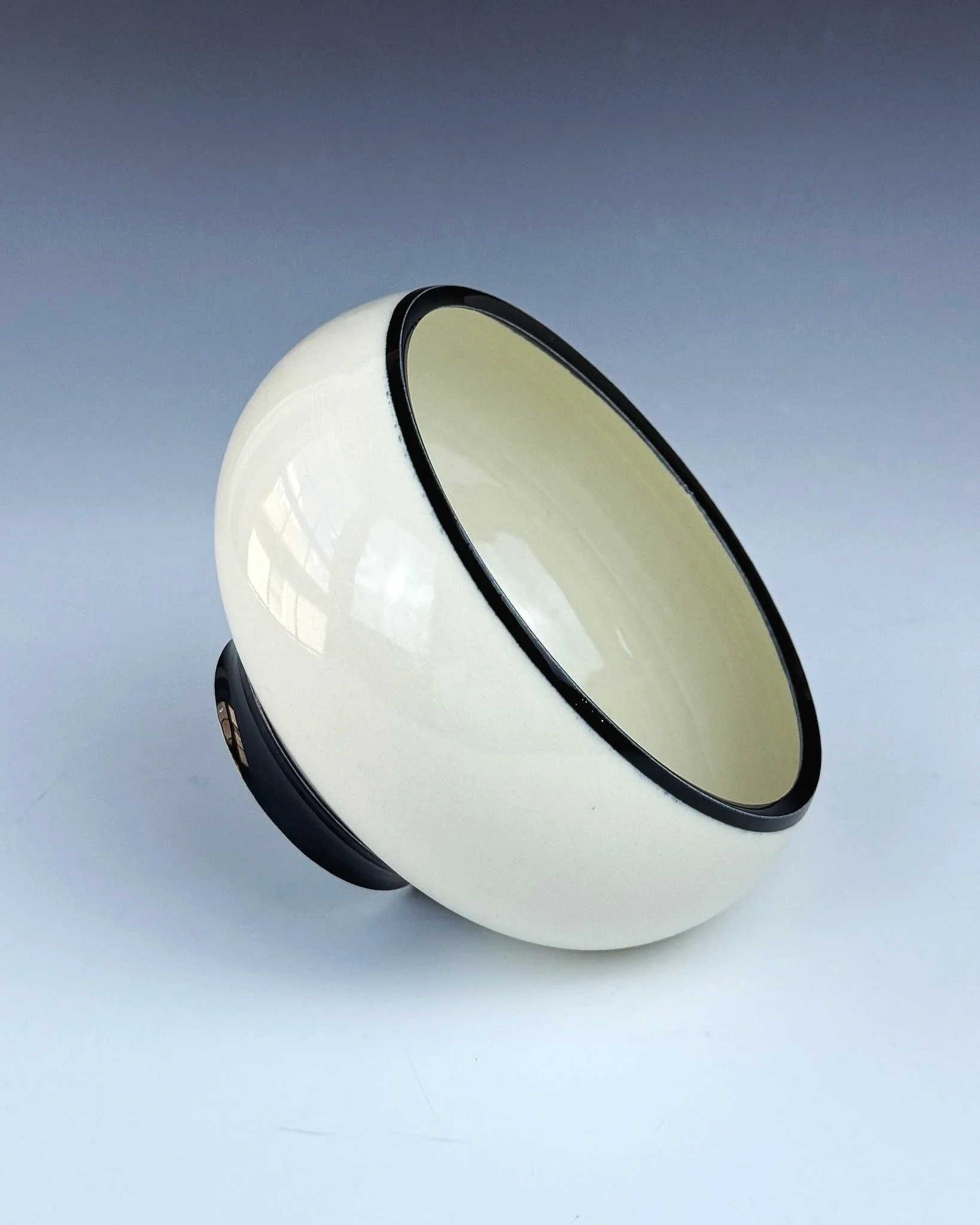 This piece was wheel thrown with porcelain. Its glaze is a reference to my signature outfit of a white T-shirt with black jeans.